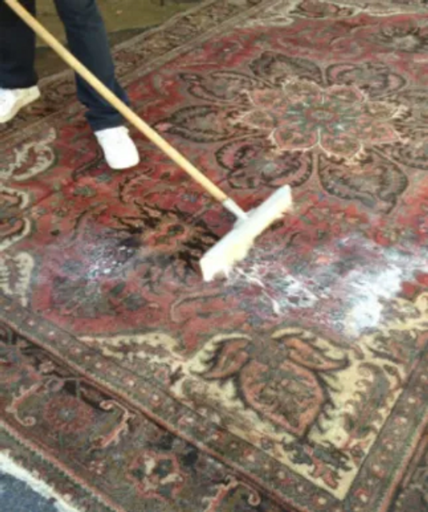 The cleaning process is a four step process that allows the radiance of the rug to be revealed. It is recommended that rugs in high traffic areas should be cleaned at least once every 12 months to remove common stains and improve the luster of the wool. Rugs in areas with less foot traffic can be cleaned every 18 to 24 months. Common cleaning products on the market today generally are not designed to effectively clean wool used in handmade rugs and may cause bleeding or color distortion.